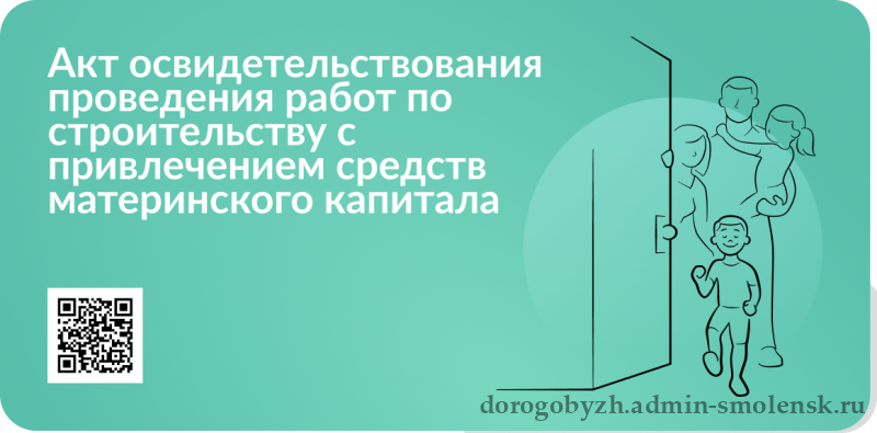 Подать заявление на выдачу акта освидетельствования проведения основных работ по строительству (реконструкции) объекта индивидуального жилищного строительства, осуществляемому с привлечением средств материнского (семейного) капитала, можно посредством портала госуслуг, воспользовавшись прямой ссылкой: https://www.gosuslugi.ru/600157/1/form либо перейдя по QR-коду.
