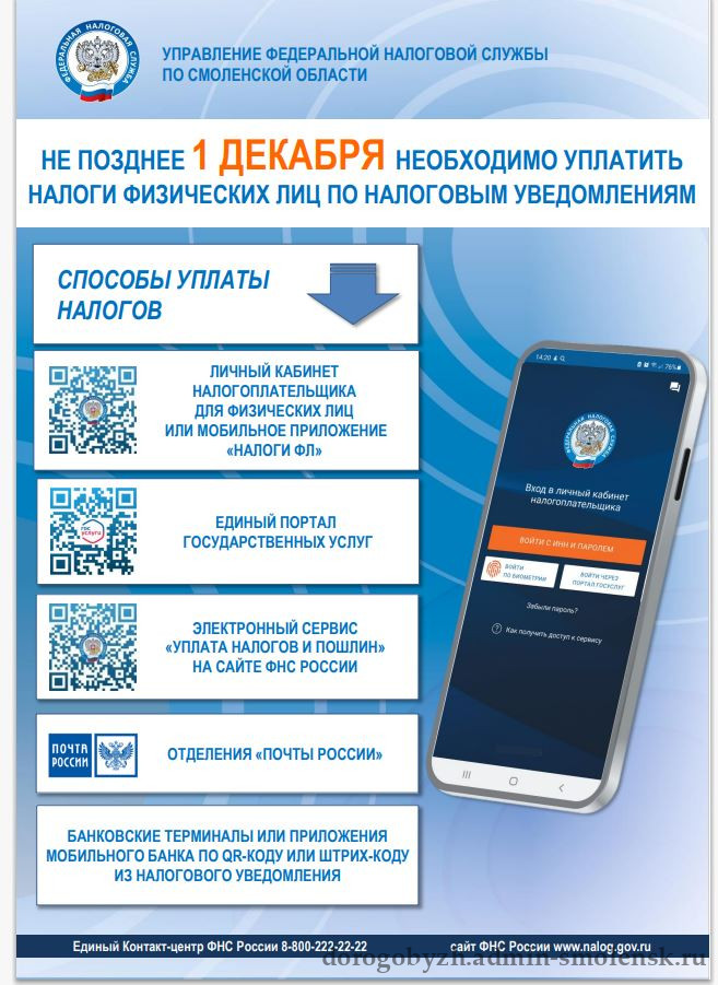 - Налоговая служба напоминает о сроке уплаты налогов