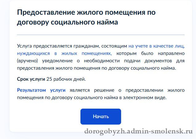 Предоставление жилого помещения по договору социального найма через Единый портал государственных (муниципальных) услуг