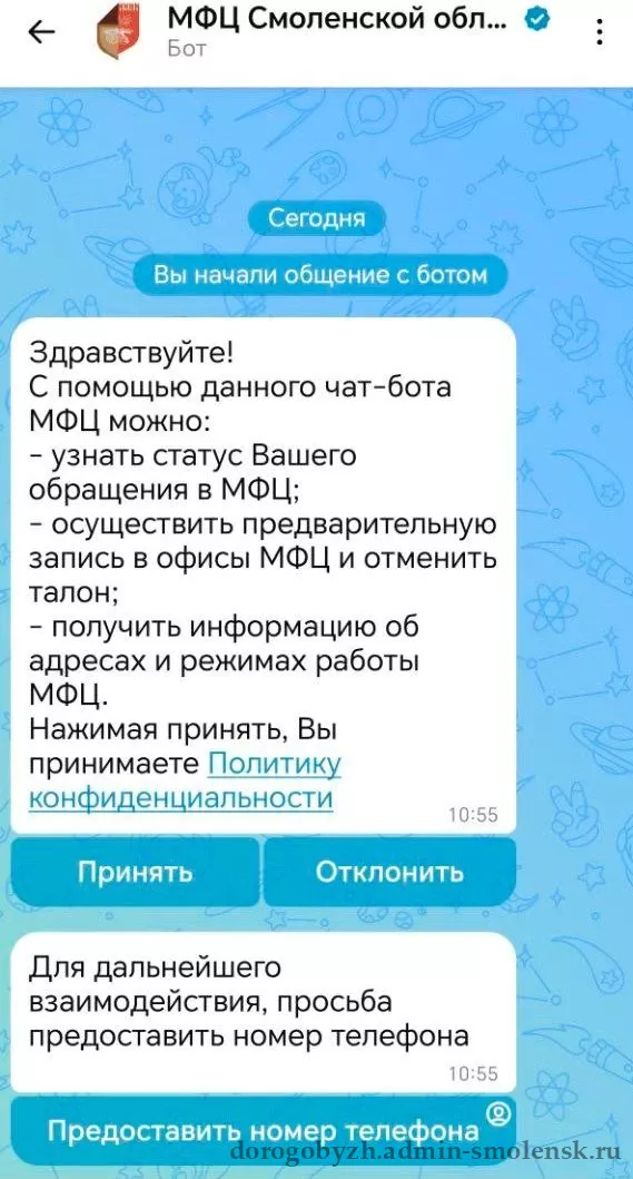 Для удобства заявителей в МФЦ Смоленской области функционируют различные цифровые сервисы. Среди них — чат-бот МФЦ Смоленской области в национальном мессенджере МАХ.