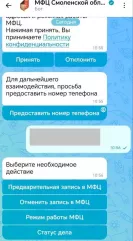Для удобства заявителей в МФЦ Смоленской области функционируют различные цифровые сервисы. Среди них - чат-бот МФЦ Смоленской области в национальном мессенджере МАХ.