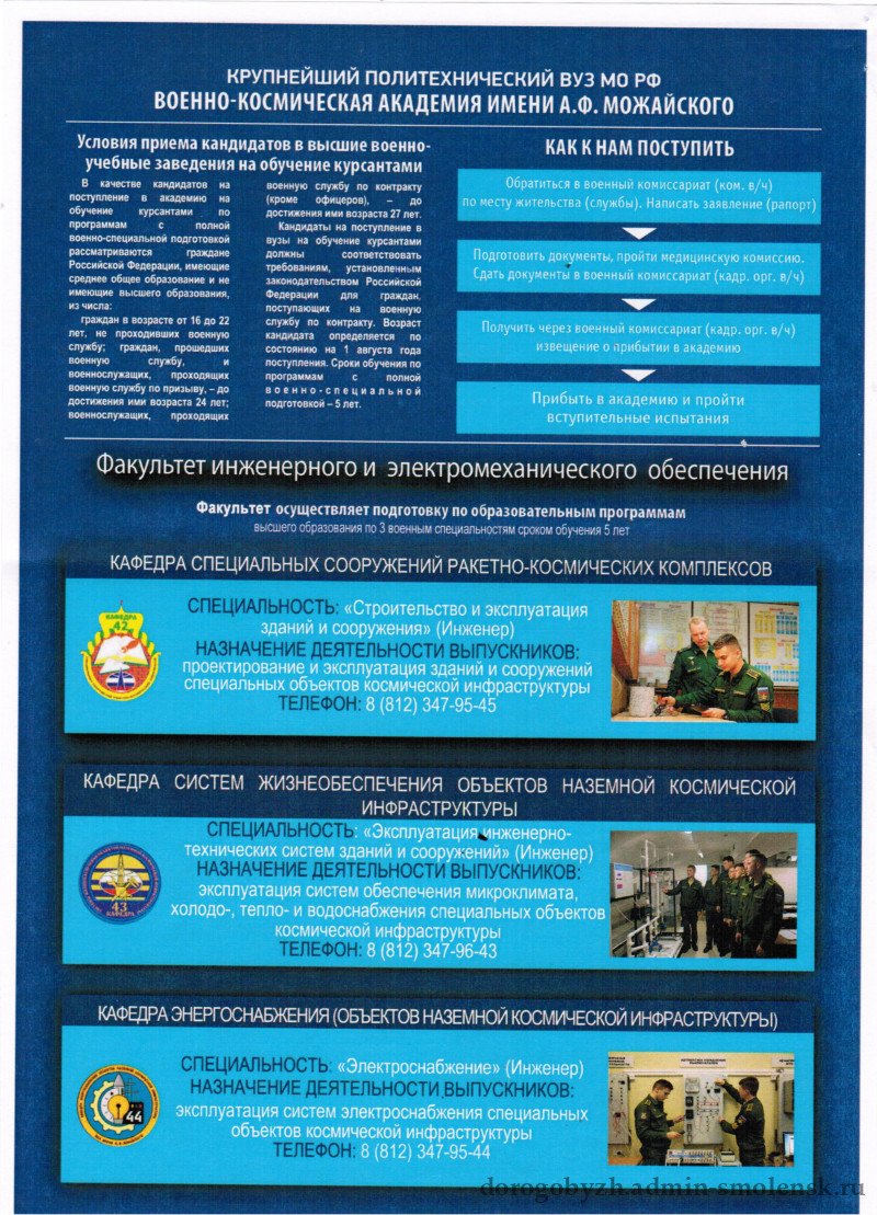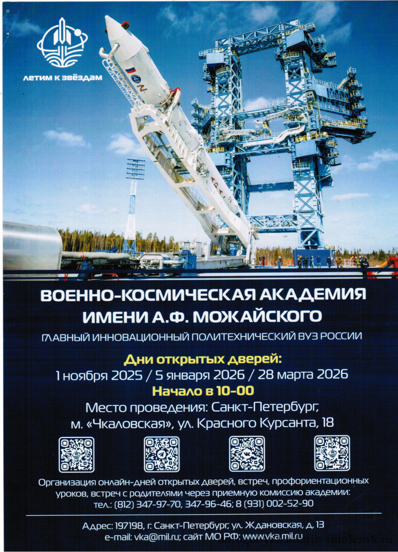 Военно-космическая академия имени А.Ф. Можайского г. Санкт-Петербург приглашает к поступлению на обучение в 2026 году выпускников средних образовательных школ и образовательных учреждений среднего специального образования